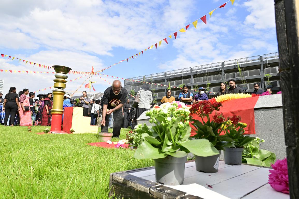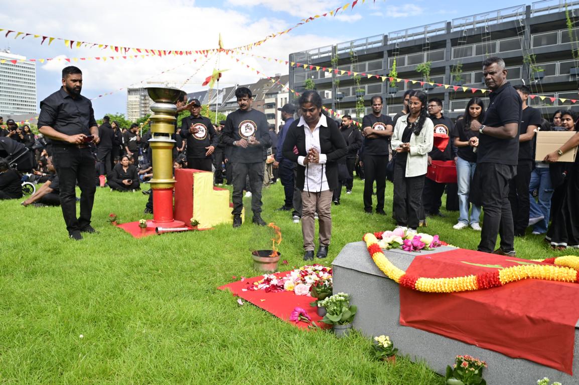 முள்ளிவாய்க்கால் நினைவுத்திடல் மக்கள் வெள்ளத்தில் நிறைந்திருக்க, நீண்ட காலமாக தமிழீழ விடுதலைப் போராட்டத்திற்கு ஆதரவு வழங்கி வருகின்ற அருட்தந்தை அல்பெர்ட் கோலன் (Albert Koolen) அவர்கள் பொதுச்சுடரினை ஏற்றி வைத்து வணக்க நிகழ்வுகளை அரம்பித்து வைத்தார். தொடர்ந்து மாவீரர்கள் மற்றும் பொதுமக்களிற்கான நினைவிடங்களிற்கு முன்பாக ஈகைச்சுடர் ஏற்றி வைக்கப்பட்டது. ஈகைச்சுடரினை 14.04.2009 அன்று புதுக்குடியிருப்பு மாத்தளன் பகுதியில் சிறிலங்கா இராணுவத்துடனான மோதலின்போது வீரச்சாவடைந்த மாவீரர் வீரவேங்கை ராதையன் என்றழைக்கப்படும் செல்லத்தம்பி மயூரன் மற்றும் 21.01.2009 அன்று ஒட்டுசுட்டான் பகுதியில் சிறிலங்கா இராணுவத்துடனான மோதலின்போது வீரச்சாவடைந்த மாவீரர் கப்டன் ராதையன் என்றழைக்கப்படும் செல்லத்தம்பி செந்தூரன் ஆகியோரின் சகோதரரும் ,ஏழு சொந்தங்களை இனவழிப்பின் போது பறிகொடுத்தவருமான செல்வன் செல்லத்தம்பி நிறோஜன் அவர்கள் ஏற்றி வைத்தார்.