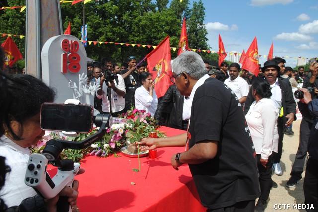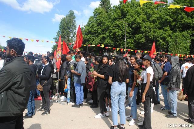 Place de la Bataille de Stalingrad பகுதியில் அமைக்கப்பட்டிருந்த முள்ளிவாய்க்கால் நினைவுத்தூபி மற்றும் நினைவுச்சின்னத்தின் முன்பாக பொதுச் சுடரினை பிரான்சு தமிழர் ஒருங்கிணைப்புக் குழுவின் நிர்வாகப் பொறுப்பாளர் திரு.நிதர்சன் அவர்கள் ஏற்றிவைத்தார். ஈகைச் சுடரினை முள்ளிவாய்க்கால் மண்ணில் 13 இரத்த உறவுகளை இழந்த குடும்ப உறுப்பினர் திரு. வரன் ஏற்றிவைக்க, முள்ளிவாய்க்கால் மண்ணில் உறவுகளை இழந்த மற்றொரு குடும்ப உறுப்பினர் திரு. சிறி அவர்களும் முள்ளிவாய்க்காலில் சாவடைந்த மருதலிங்கம் சியாமலா அவர்களின் சகோதரனும் மலர்வணக்கம் செலுத்தினர்.