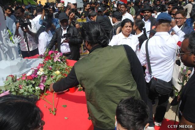 Depute Val d”Oise Carlos Bilingo, Conseil Municipaux Maire la Cournuve, Maire Bondy, Maire adjoint Noisy le sec, Conseil Général Seine Saint Denis அவர்களும் கலந்து கொண்டு மலர்வணக்கம் செலுத்தியதோடு தமது ஆதரவுகளை அனைவரும் அரங்கில் தெரிவித்துச் சென்றிருந்தனர்.பிரான்சு தமிழர் கலை பண்பாட்டுக் கழக கலைஞர்கள் மற்றும் தமிழ்ச்சோலை மாணவர்கள் சிறிலங்கா இராணுவ அடக்குமுறை, இலங்கையின் சமகால அரசியலை ஊர்திப் பவனியில் ஆற்றுகைப்படுத்தியிருந்தமை அனைவரையும் கவர்ந்திருந்தது.திறான்சி தமிழ்ச்சோலை, புளோமெனில் தமிழ்ச்சோலை, ஆதிபராசக்தி, செவ்ரோன் தமிழ்ச்சோலை, கவின் கலையகம், சேர்ஜி தமிழ்ச்சோலை, குசான்வீல் தமிழ்ச்சோலை, பொண்டி தமிழ்ச்சோலை செல் தமிழ்ச்சோலை, ஒள்னேசுபுவா 2 தமிழ்ச்சோலை மாணவ மாணவியரின் முள்ளிவாய்க்கால் நினைவு சுமந்த எழுச்சி நடனங்களும் உணர்வு பூர்வமாக இடம்பெற்றிருந்தன.ஒள்னே சுபுவா 2 மாணவர்களின் “புதிய தலைமுறை” என்ற பிரெஞ்சு மொழி நாடகமும் பிரெஞ்சு மொழி மக்களைத் திரும்பிப்பார்க்க வைத்தது.