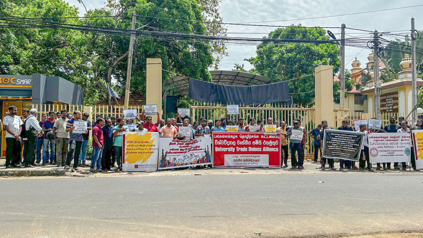 இலங்கையிலுள்ள பல்கலைக்கழகங்களில் பணியாற்றும் சுமார் பன்னிரண்டாயிரம் பணியாளர்கள் தங்களுடைய சம்பள முரண்பாடு மற்றும் நீண்ட காலமாகத் தீர்த்து வைக்கப்படாத பிரச்சினைகள் பலவற்றை தீர்க்கக் கோரி நாடளாவிய ரீதியில் போராட்டத்தை முன்னெடுத்துவரும் நேரத்தில், பல்கலைக்கழகத்துக்குச் சொந்தமான கட்டடமொன்றைக் கோலாகலமாகத் திறந்து வைப்பதற்காக ஜனாதிபதி உள்ளிட்ட கல்வி அமைச்சு மற்றும் பல்கலைக்கழக மானியங்கள் ஆணைக்குழுவின் நடவடிக்கையைக் கண்டித்து போராட்டம் நடத்தப்பட்டது.