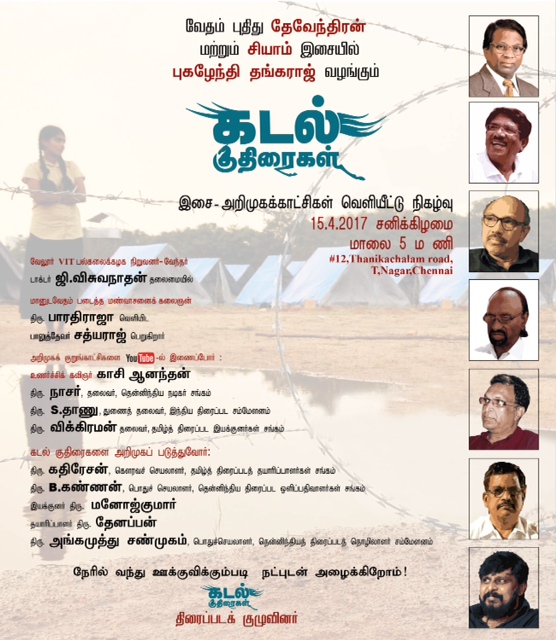 ஸ்ரிபன் புஸ்பராஜா மற்றும் லிங்கம் ஆகியோரின் இணைத்தயாரிப்பில் குளோபல் மீடியா இன்வெஸ்ற் அஸ் தயாரிப்பில் உருவாகியுள்ள ‘கடல் குதிரைகள்’ திரைப்படத்தின் இசை வெளியீட்டு விழாவில் கலந்துகொண்டு சிறப்பிக்குமாறு ‘கடல் குதிரைகள்’ படக்குழுவினர், அனைவரையும் அன்போடு அழைக்கிறார்கள். அனைவரும் வருக.