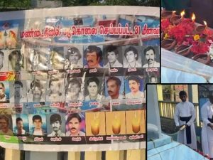 மண்டைதீவு கடலில் படுகொலை செய்யப்பட்ட 31 மீனவர்களின் 38ஆவது ஆண்டு நினைவு தினம் யாழ்ப்பாணம் குருநகரில் உயிரிழந்த மீனவர்களின் நினைவுத்தூபி அமைவிடத்தில் அனுஷ்டிக்கப்பட்டது.