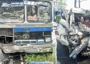 விபத்தின் போது பஸ்ஸில் பயணித்த 8 பேரும் வேனில் பயணித்த இருவரும் காயமடைந்துள்ளனர்.