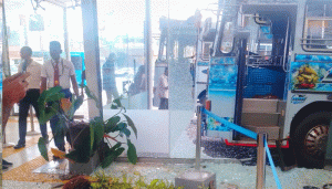இந்த விபத்தினால் பஸ் தரிப்பிடத்துக்கு பாரிய சேதம் ஏற்பட்டுள்ளதுடன் பஸ் சாரதி கைது செய்யப்பட்டதாக பொலிஸார் தெரிவித்தனர்.
