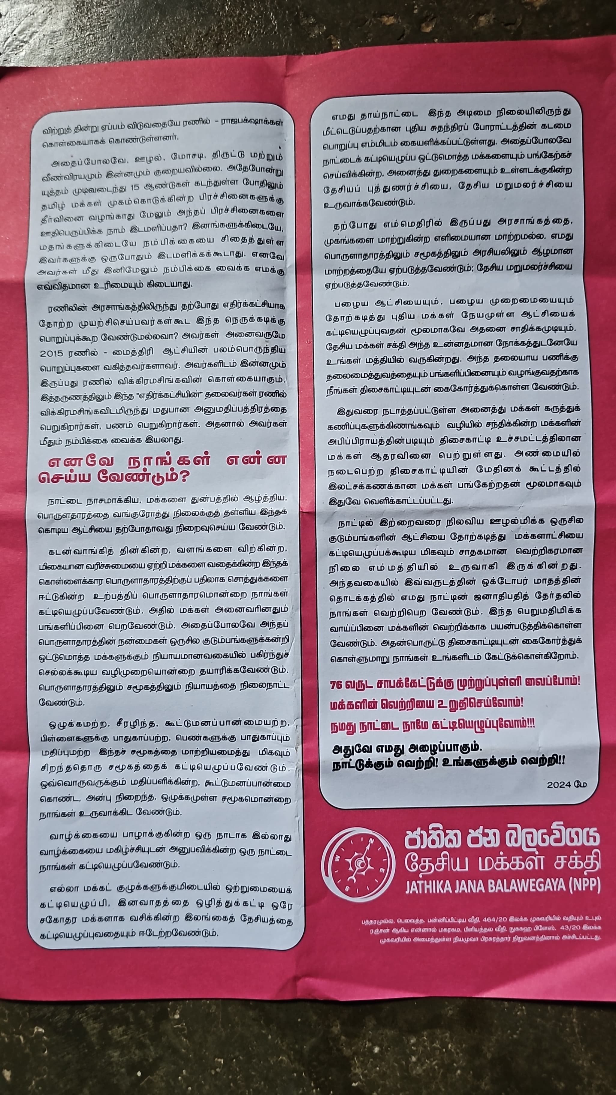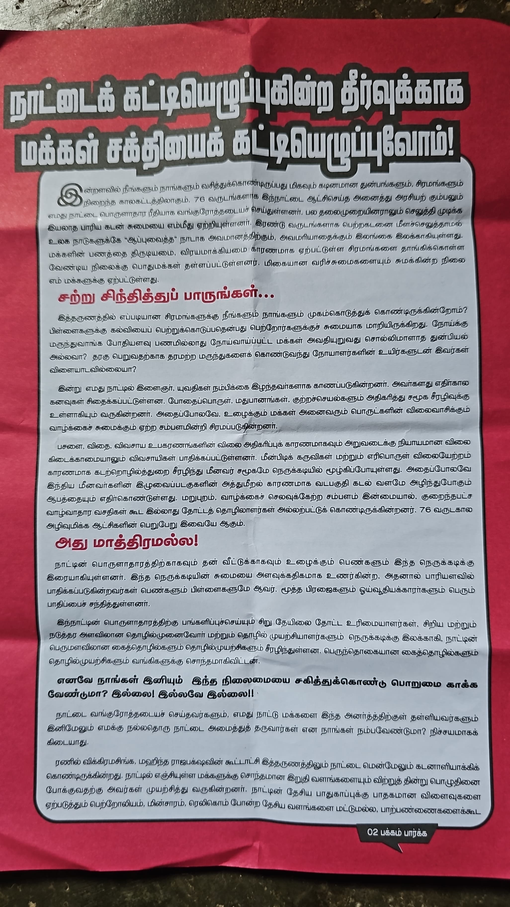 நாட்டை கட்டி எழுப்புவது எவ்வாறு என மக்களுக்கு தெளிவுபடுத்தும் நோக்கில் இந்த துண்டு பிரசுரங்கள் விநியோகிக்கப்பட்டன.