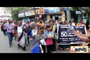 சுழற்சி முறையிலான உண்ணாவிரதப் போராட்டத்தின் 50ஆவது நாளான நேற்று காணாமல் ஆக்கப்பட்டவர்களின் உறவுகள் மற்றும் ஆதரவாளர்கள் வவுனியா கந்தசாமி கோவில் முன்றலில் இருந்து ஊர்வலமாக பசார் வீதி வழியாக கொரவப்பொத்தான வீதியை வந்தடைந்து அங்கிருந்து வவுனியா நீதிமன்றத்தின் வழியாக உண்ணாவிரதம் நடைபெறும் மேடையை வந்தடைந்தனர்.