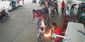 கிளிநொச்சி எரிபொருள் நிரப்பு நிலையத்தில் திடீரென தீப்பற்றிய மோட்டார் சைக்கிளால் பரபரப்பு ஏற்பட்டுள்ளது.