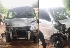 விபத்தின் போது வேனில் பயணித்த இருவர் காயமடைந்துள்ளனர்.