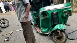 முச்சக்கர வண்டி ஒன்று மோட்டார் சைக்கிள் ஒன்றுடன் மோதியதில் இந்த விபத்து இடம்பெற்றுள்ளது.
