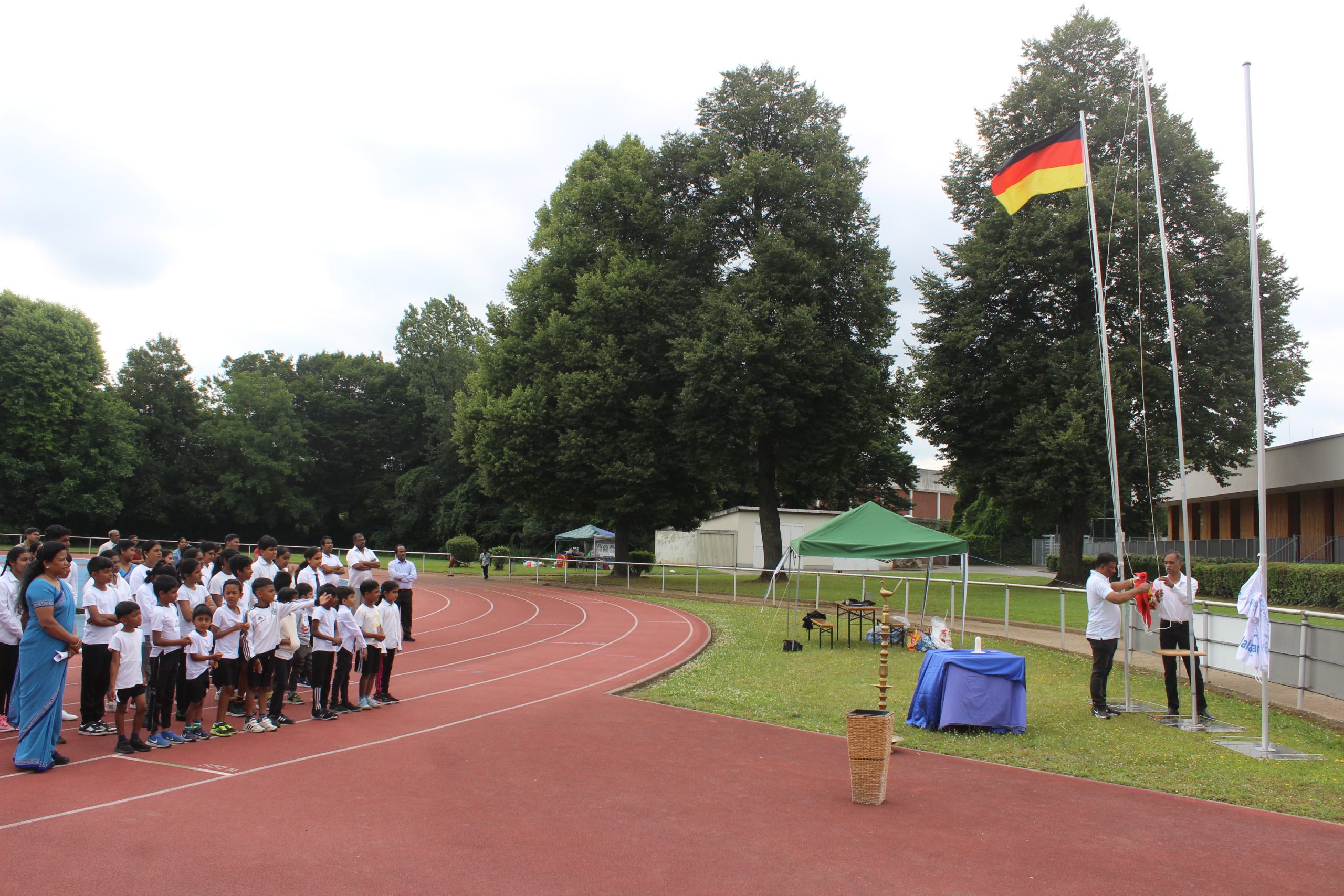 தொடர்ந்து யேர்மன்தேசியக்கொடி, தமிழீழதேசியக்கொடி மற்றும் தமிழாலயக் கொடி ஏற்றப்பட்டு தொடர்ந்து, போட்டியாளர்களால் வெற்றிச்சுடர் மைதானத்தினுள்ளே ஏந்திவரப்பட்டு, ஏற்றிவைத்து உறுதியேற்புடன் போட்டிகள் தொடங்கின. அயற் தமிழாலயங்களும் இணைய 110க்கு மேற்பட்ட போட்டியாளர்களின் பங்குபற்றுதலோடு சிறப்பாக நடைபெற்றது.