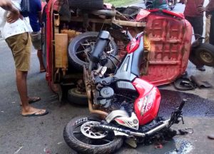 முச்சக்கரவண்டி ஒன்று மோட்டார் சைக்கிள் ஒன்றுடன் மோதியதில் இந்த விபத்து இடம்பெற்றுள்ளது.