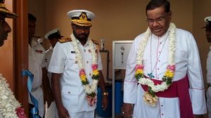 ஊர்காவற்துறை புனித மரியாள் ஆலயத்தின் வளாகத்தில் இலங்கை கடற்படையினரால் அமைக்கப்பட்ட குடிநீர் சுத்திகரிப்பு தொகுதி உயிர்த்த ஞாயிறு தினமாகிய இன்றைய தினம் யாழ் ஆயர் பேனாட் ஐஸ்ரின் ஞானப்பிரகாசம் ஆண்டகையினால் திறந்துவைக்கப்பட்டது.ஆயரினால் இலங்கை கடற்படை தளபதியிடம் கோரப்பட்டதையிட்டு கடற்படையினரால் கடந்த மாத இறுதி பகுதியில் சுத்திகரிப்பு இயந்திர தொகுதி அமைக்கப்படும் வேலைத்திட்டம் ஆரம்பிக்கப்பட்டு இன்றைய தினம் திறந்து வைக்கப்பட்டது.இந்நிகழ்வில் வடபகுதி கடற்படை கட்டளை தளபதி மற்றும் கடற்படை அதிகாரிகள் குருமார்கள் கலந்து கொண்டனர்.
