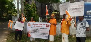 வடமாகாண ஆளுநர் அலுவலகம் முன்பாக இன்றைய தினம் செவ்வாய்க்கிழமை சிவசேனையின் ஏற்பாட்டில் போராட்டம் முன்னெடுக்கப்பட்டது.