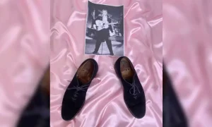 1950-களில் அவர் மேடை ஏறி பாடியபோது ஊதா நிறத்திலான காலணிகளை அணிவது வழக்கம். இந்தநிலையில் எல்விஸ் பிரெஸ்லி பயன்படுத்திய அந்த காலணிகள் அவருடைய நெருங்கிய நண்பர் ஒருவரினால் சமீபத்தில் ஏலத்துக்கு விடப்பட்டது.