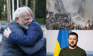உலகின் மிகப்பெரிய ஜனநாயகத்தை சேர்ந்த தலைவர் ஒருவர் உலகின் கொடூரமான குற்றவாளியோடு மாஸ்கோவில் இன்று கட்டித் தழுவியுள்ளது அமைதிக்கான முயற்சிகள் மீது விழுந்த பெருத்த அடியாக உள்ளது’ என்று தெரிவிட்டுள்ளார். கடந்த மாதம் இத்தாலியில் நடந்த ஜி 7 மாநாட்டில் மோடியும் ஜெலன்ஸ்கியும் சந்தித்துக்கொண்டது குறிப்பிடத்தக்கது.