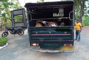வாகனத்தில் 3 பசு மாடுகளும் 6 கன்றுகளும் இருந்ததாகவும் அதில் ஒன்று இறந்த நிலையில் காணப்பட்டதாகவும் பொலிஸார் தெரிவித்தனர்.