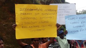 நாள் சம்பளமாக நிர்ணயிக்கப்பட்டுள்ள 1700 ரூபாவை வழங்குமாறு பெருந்தோட்ட கம்பனிகளை வலியுறுத்தி தலவாக்கலை, நானுஓயா தோட்ட தொழிலாளர்கள் இன்று (14) கவனயீர்ப்பு போராட்டத்தில் ஈடுபட்டனர்.
