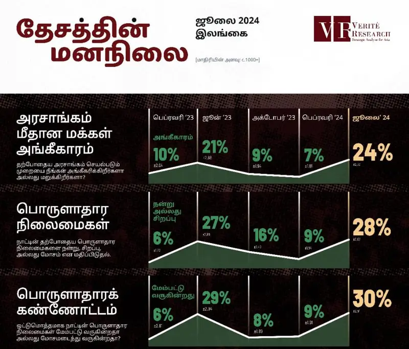 கடந்த பெப்ரவரி மாதம் 7 வீதமாக இருந்த அரசாங்கத்தின் மீதான நம்பிக்கை இந்த மாதத்தில் 24 வீதமாக உயர்ந்துள்ளதாக அந்த நிறுவனம் குறிப்பிட்டுள்ளது.