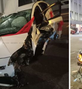 விபத்தின் போது புதுமண தம்பதிகள் இருவர் உட்பட ஐந்து பேர் காயமடைந்துள்ளனர்.