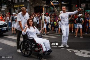 இந்நிலையில் ஞாயிற்றுக்கிழமை பரிசின் புறநகர் பகுதியான வின்செனெசில் அசி சக்கரநாற்காலியில் ஒலிம்பிக் சுடரை ஏந்திச்சென்றுள்ளார்.