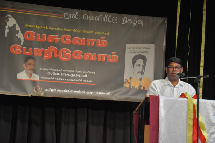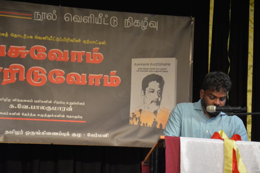 தமிழீழ விடுதலைப் புலிகளின் சிறப்பு உறுப்பினர் க.வே. பாலகுமாரனின் தேர்ந்த எழுத்துகளின் தொகுப்பான பேசுவோம் போரிடுவோம் என்ற நூல் வெளியீடு ஸ்ருற்காட் நகரத்தில் 28.07.2024 ஞாயிற்றுக்கிழமை சிறப்பாக நடைபெற்றது. இந்நிகழ்வில் ஸ்ருற்காட் நகரில் வாழம் தமிழ் மக்களும் அதனை அண்டியுள்ள நகரங்களில் வாழும் தமிழ் மக்களும் கலந்துகொண்டு விழாவைச் சிறப்பித்தனர். 15:20 மணிக்குத் தொடங்கிய விழா, பொதுச்சுடர், ஈகைச்சுடர் ஏற்றலுடன் தொடங்கி, மாவீரர் படத்துக்கு மலர் மற்றும் சுடர் வணக்கம் செய்யப்பட்டது.