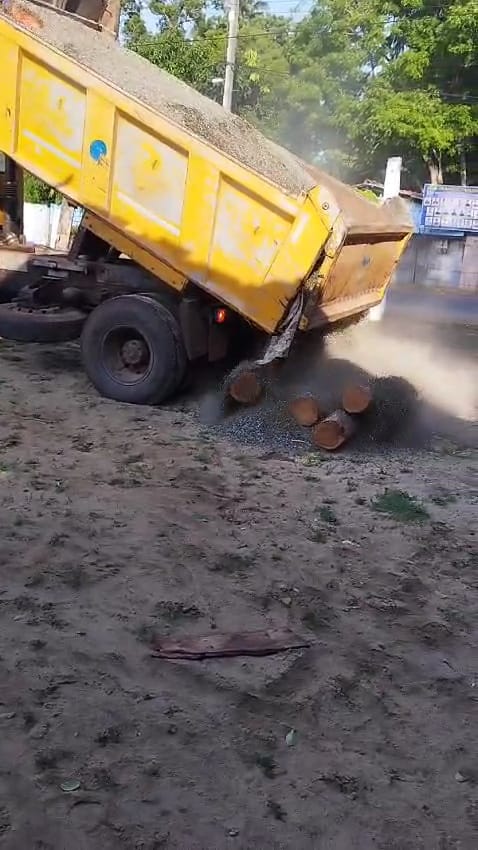 குறித்த, டிப்பர் வாகனத்தினுள் மரக்குற்றிகள் அடுக்கப்பட்டு அதற்கு மேல் சிறிய கற்கல் ஏற்றப்பட்டு சூட்சுமமான முறையில் கடத்தப்பட்டமை கண்டுபிடிக்கப்பட்டது.