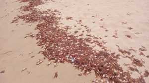 சுமார் ஐந்து தொடக்கம் ஆறு கிலோமீட்டர் நீளமுள்ள இந்த கடற்கரையில் மூன்று தொடக்கம் 4 கிலோ மீட்டர் தூரம் வரை இவ்வாறான சிகப்பு நிற நண்டுகள் இறந்த நிலையில் கரை ஒதுங்கி உள்ளன என்பது குறிப்பிடத்தக்கது.