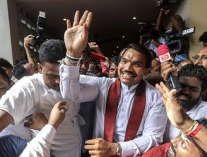 அவரது பெயரை சி;ங்களத்தில் எழுதினால் அது ராஜபக்சாக்களின் வாரிசின் பெயரை ஒத்ததாக காணப்படும்.