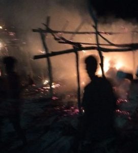 அதில் வாடிகள் சில எரிந்த நிலையில், மூன்று படகுகள் தீக்கிரையாகியுள்ளன.