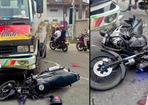 லொறி ஒன்று மோட்டார் சைக்கிள் ஒன்றுடன் மோதியதில் இந்த விபத்து இடம்பெற்றுள்ளது.