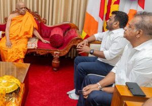 நாட்டில் நிலவுகின்ற அரசியல் நிலைமை பற்றி மஹா சங்கத்தினருடன் கலந்துரையாடிய அநுரகுமார திசாநாயக்க எதிர்வரும் ஜனாதிபதி தோ்தலில் வெற்றி பெறுவதற்கான நல்லாசியை அவர்களிடம் இதன்போது பெற்றுக்கொண்டார்.