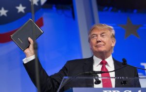 தேர்தல் பிரச்சாரத்தில் தீவிரமாக இறங்கியுள்ள டிரம்ப்,தான் கலந்துகொள்ளும் கூட்டங்களில் ‘காட் பிளஸ் த யுஎஸ்ஏ’ என்று பெயரிடப்பட்டுள்ள பைபிளை விற்பனை செய்துவருகிறார். இந்த பைபிளின் விலை 60 டாலர் (ரூ.5,000) ஆகும்.