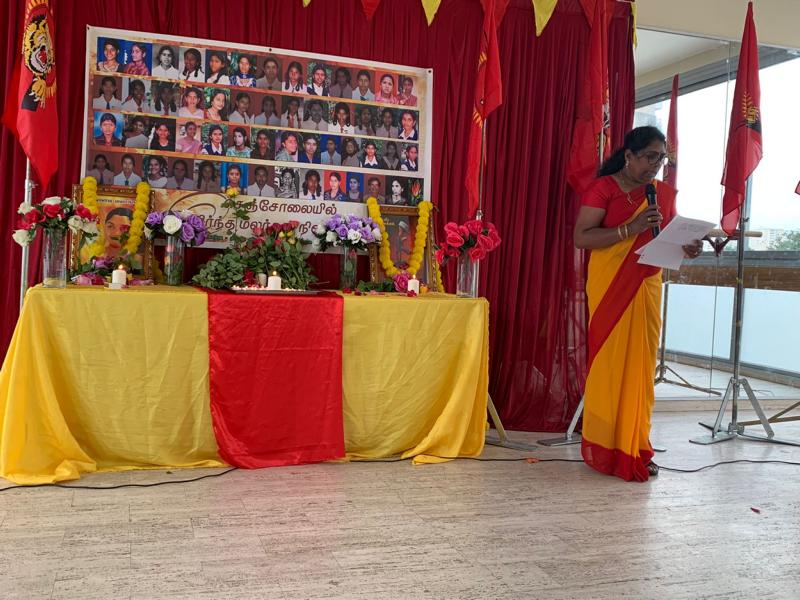 அகவணக்கத்தைத் தொடர்ந்து நிகழ்வில் கலந்து கொண்ட அனைவரும் மலர் வணக்கம் செலுத்தினர். தொடர்ந்து அரங்க நிகழ்வுகள் இடம்பெற்றன. கவிதை, நினைவுரைகள் இடம்பெற்றிருந்தன. நினைவுரைகளை பிரான்சு தமிழர் ஒருங்கிணைப்புக்குழு பரப்புரைப் பொறுப்பாளர் திரு.மேத்தா அவர்களும் செயற்பாட்டாளர் திரு.செங்கதிர் அவர்களும் தமிழ்ப் பெண்கள் அமைப்பைச் சேர்ந்த திருமதி வலன்ரீனா அவர்களும் ஆற்றியிருந்தனர். நினைவுக் கவிதையினை திருமதி யசோ அவர்கள் வழங்கியிருந்தார்.