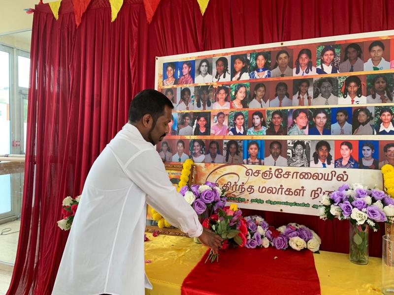 வள்ளிபுனம் செஞ்சோலை சிறுவர் வளாகத்தின் மீது 14.08.2006 அன்று சிறீலங்கா வான்படையினர் நடாத்திய தாக்குதலில் சாவடைந்த 61 மாணவிகளின் 18 ஆவது ஆண்டு நினைவேந்தலும் , தாய்த் தமிழகத்தில் தமிழீழ மக்களுக்காய் தன் உடலில் தீ மூட்டி ஆகுதியான தோழர் செங்கொடியின் 13 ஆவது ஆண்டு நினைவேந்தலும் பாரிஸ் புறநகர் பகுதியான திரான்சி பகுதியில் நேற்று (17.08.2024) சனிக்கிழமை பிற்பகல் 15.00 மணிக்கு இடம்பெற்றது.பிரான்சு தமிழர் ஒருங்கிணைப்புக்குழு பிரான்சு தமிழ்ப்பெண்கள் அமைப்பின் ஏற்பாட்டில் இடம்பெற்ற இந்நிகழ்வில் பொதுச்சுடரினை திரான்சி தமிழ்ச்சங்கத் தலைவர் திரு.பாபு அவர்கள் ஏற்றிவைக்க ஈகைச்சுடரினை 13.01.1994 அன்று பருத்தித்துறை கடற்பரப்பில் சிறீலங்கா கடற்படைமீது மேற்கொள்ளப்பட்ட தாக்குதலில் வீரச்சாவைத் தழுவிக்கொண்ட கடற்கரும்புலி சுதாஜினி அவர்களின் தாயார் ஏற்றிவைத்து மலர்வணக்கம் செலுத்தினார்.