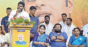தமிழக பாஜக சார்பில் சென்னையில் ‘தமிழகம் மீட்போம், தளராது உழைப்போம்’ என்ற தலைப்பில் பொதுக்கூட்டம் நேற்று நடைபெற்றது. இதற்கு மாநில துணை தலைவர் கரு.நாகராஜன் தலைமை தாங்கினார். மாநில தலைவர் அண்ணாமலை சிறப்புரையாற்றினார். முன்னாள் மாநில தலைவர் தமிழிசை சவுந்தரராஜன், மாநில துணை தலைவர்கள் வி.பி.துரைசாமி, நாராயணன் திருப்பதி, மாநில செயலாளர்கள் சுமதி வெங்கடேசன், கராத்தே தியாகராஜன், பிரமிளா சம்பத், முன்னாள் எம்எல்ஏ விஜயதரணி, பாஜக நிர்வாகி நடிகை குஷ்பு, நெல்லை மாநகராட்சி முன்னாள் மேயர் புவனேஸ்வரி, விளையாட்டு பிரிவு மாநில தலைவர் அமர் பிரசாத் ரெட்டி, மாநில செய்தி தொடர்பாளர் ஏ.என்.எஸ்.பிரசாத் உள்ளிட்ட நிர்வாகிகள் பேசினர்.