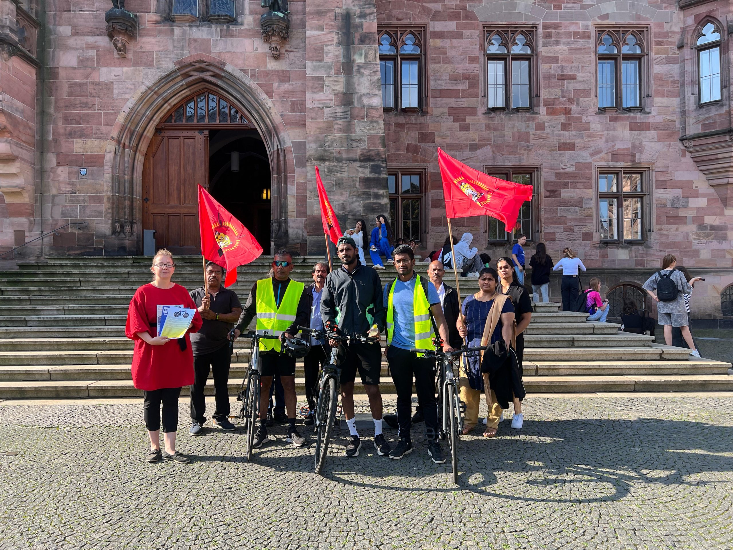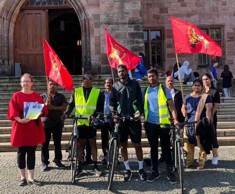 மனித உரிமைகள் ஆணையகத்தின் 57 வது கூட்டத்தொடரினை முன்னிட்டு, சிறிலங்கா பேரினவாத அரசினால் திட்டமிட்டு நடாத்தப்படுகின்ற தமிழின அழிப்பிற்கு அனைத்துலக சுயாதீன விசாரணையை நடாத்தக் கோரியும் தமிழீழமே தமிழர்களுக்கான நிரந்தரத் தீர்வு என்பதனை வலியுறுத்தியும் நெதர்லாந்தில் ஆரம்பமான ஈருருளிப் பயணமானது,எழுச்சியோடு பயணித்து பெல்சியம் நாட்டினை ஊடறுத்து பல சந்திப்புக்களோடு பயணித்து,luxemburg மாநகரம்,வெளிவிவகார அமைச்சில் மனுக்கைளிக்கப்பட்டு யேர்மனி எல்லையினைத் தாண்டி ஈருருளிப்பயணம் மாலை நிறைவுபெற்றது.இன்று காலை (05.09.2024) 9மணியளவில் Dillingen என்னும் இடத்தில் இருந்து அகவணக்கத்துடன் ஆரம்பமாகி, saarbrucken நோக்கி பயணித்து saarbrucken நகரபிதாவிடம் மனுக்கையளிக்கப்பட்டது. தொடர்ந்து யேர்மனி வாழ் தமிழ்மக்களதும் இளையோர்களதும் பேராதரவுடனும் எழுச்சியுடனும் Landau நோக்கிப் பயணித்துக் கொண்டிருக்கிறது.