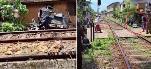 பாதுகாப்பற்ற முறையில் பயணித்த முச்சக்கரவண்டி ஒன்று ரயில் மோதி விபத்துக்குள்ளாகியுள்ளது.