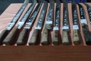 இந்த சுற்றிவளைப்பின் போது குறித்த வீட்டின் அறையொன்றில் இருந்த கட்டிலுக்கு அடியில் மிகவும் சூட்சுமமான முறையில் மறைத்து வைக்கப்பட்டிருந்த 10 வாள்கள் கண்டுபிடிக்கப்பட்டுள்ளன.