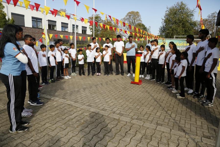 தமிழர் ஒருங்கிணைப்புக் குழு யேர்மனியின் கம் நகரத்தின் கோட்டைப் பொறுப்பாளர் திரு. நடறாஜா ஞான்றாஜா அவர்கள் பொதுச்சுடரினை ஏற்றிவைக்க, தமிழர் விளையாட்டுக் கூட்டமைப்பின் பொறுப்பாளர் திரு. தர்மலிங்கம் இராஜகுமாரன் அவர்கள் யேர்மனிய நாட்டுத் தேசியக்கொடியினையும் தமிழர் ஒருங்கிணைப்புக் குழு யேர்மன் கிளைப் பொறுப்பாளர் திரு. யோன்பிள்ளை சிறிரவிந்திரநாதன் அவர்கள் தமிழீழத் தேசியக்கொடியினையும் தமிழ்க் கல்விக் கழகம் யேர்மனியின் வடமத்திய மாநிலச் செயற்பாட்டாளர்களில் ஒருவரான தமிழ்மணி திரு. கந்தையா அம்பலவாணப்பிள்ளை அவர்கள் தமிழ்க்கல்விக்கழகக் கொடியினையும் ஏற்றிய பின்னர் அகவணக்கத்தோடு விளையாட்டுப் போட்டிகள் ஆரம்பமாகியது.