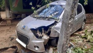 சாரதியின் கட்டுப்பாட்டை இழந்த கார் ஒன்று வீதியை விட்டு விலகி அருகிலிருந்த மின் கம்பத்தில் மோதியதில் இந்த விபத்து இடம்பெற்றுள்ளது.