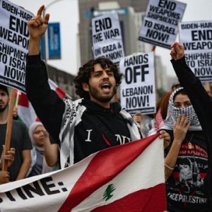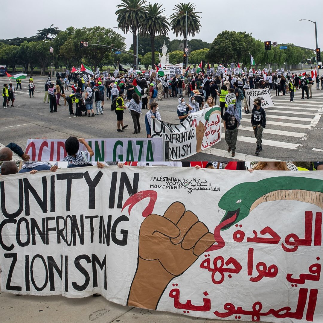பாலஸ்தீன பகுதிகளில் யுத்தம் ஆக்கிரமிப்பு ஆகியவற்றிற்கு எதிரான நிலைப்பாட்டை எடுக்கும் யூத – இஸ்ரேலிய கூட்டமைப்பை சேர்ந்தவர்கள் என தங்களை தெரிவித்துக்கொண்டுள்ள ஆர்ப்பாட்டக்காரர்கள் யூதகொடியை ஏந்தியவாறு ஆர்ப்பாட்டத்தில் ஈடுபட்டுள்ளனர்.