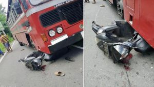 இலங்கை போக்குவரத்துச் சபைக்குச் சொந்தமான பஸ் ஒன்று வீதியில் பயணித்த மற்றுமொரு பஸ் ஒன்றை கடந்து முன்னோக்கிச் செல்ல முயன்ற போது அதே திசையில் பயணித்த மோட்டார் சைக்கிள் ஒன்றின் பின்புறத்தில் மோதியதில் இந்த விபத்து இடம்பெற்றுள்ளது.
