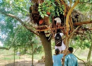 பின்னர், யானைகளின் அச்சுறுத்தல் காரணமாக இந்த மரத்தில் வீடு கட்டி வாழ்ந்து வருகின்றோம்.