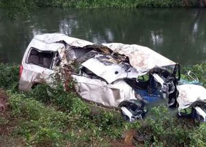 பின்னர், இந்த காட்டு யானையானது குறித்த வேனை தாக்கியுள்ள நிலையில் வேனானது அருகில் உள்ள ஆற்றில் கவிழ்ந்து வீழ்ந்துள்ளது.