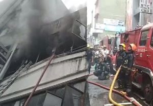 கட்டிடத்தின் மூன்றாவதுமாடியில் தீபரவியுள்ளது.அந்த பகுதியை நோக்கி தீயணைப்பு வாகனங்கள் விரைவதை அவதானிக்க முடிகின்றது.