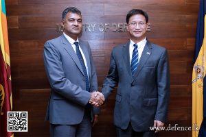 கோட்டை ஸ்ரீ ஜெயவர்தனபுரவில் உள்ள பாதுகாப்புத் தலைமையக வளாகத்தில் வெள்ளிக்கிழமை (11) பாதுகாப்பு அமைச்சின் செயலாளர் எயார் வைஸ் மார்ஷல் சம்பத் துய்யகொந்தவை (ஓய்வு) இலங்கைக்கான சீன தூதுவர் குய் ஜென்ஹோங் சந்தித்தார்.