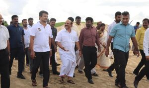 ஓ.எம்.ஆர். சாலை மற்றும் ஜி.எஸ்.டி. சாலையில் உள்ள கொண்டங்கி, சிறுதாவூர், தையூர் உள்ளிட்ட பல்வேறு ஏரிகளில் இருந்து வரும் உபரி நீர் பக்கிங்காம் கால்வாய் வழியாக முட்டுக்காக முகத்துவாரம் சென்று அங்கு கடலில் கலக்கிறது. அதிக நீரோட்டம் மற்றும் காற்றின் வேகம் ஆகியவற்றின் காரணமாக அந்த முகத்துவாரப் பகுதியில் மண் சேர்ந்து விடுவது வழக்கம். ஒவ்வொரு 3 மாத இடைவெளியிலும் இந்த முகத்துவாரப் பகுதியில் பொதுப்பணித்துறை மற்றும் நீர்வளத்துறை ஆகியவை இணைந்து தூர் வாரும் பணியை மேற்கொள்கின்றன. இந்நிலையில் இப்பணியை இன்று (அக்13) மாலை பார்வையிட்ட துணை முதல்வர் மழைக்காலங்களில் வெள்ள நீர் முகத்துவாரப் பகுதியை வந்து சேரும் இடம், கடலில் கலக்கும் இடம், தூர் வாரப்படும் மண்ணை கொட்டி வைக்கும் இடம் ஆகியவற்றை ஆய்வு செய்தார். மழை நீர் கடலில் சென்று சேரும் இடத்தில் இருந்து அகற்றப்படும் மண்ணை அதே பகுதியில் கொட்டி வைக்காமல் உடனடியாக அகற்றி விடுமாறு அவர் அதிகாரிகளுக்கு உத்தரவிட்டார்.