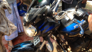 மோட்டார் சைக்கிளில் வந்த இளைஞர் மோட்டார் சைக்கிள் காற்றுப்போன