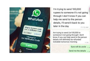 அண்மையில் இவ்வாறான சம்பவங்களுக்கு பலர் முகம் கொடுத்துள்ளனர். அவர்களுக்கு எதிர்பாராமல் வட்ஸ் அப் ஊடாக ஒரு தெரிந்த நபர்களிடம் இருந்து சரிபார்ப்பு குறியீட்டு இலக்கம் (verification code) அனுப்பப்படுகிறது.