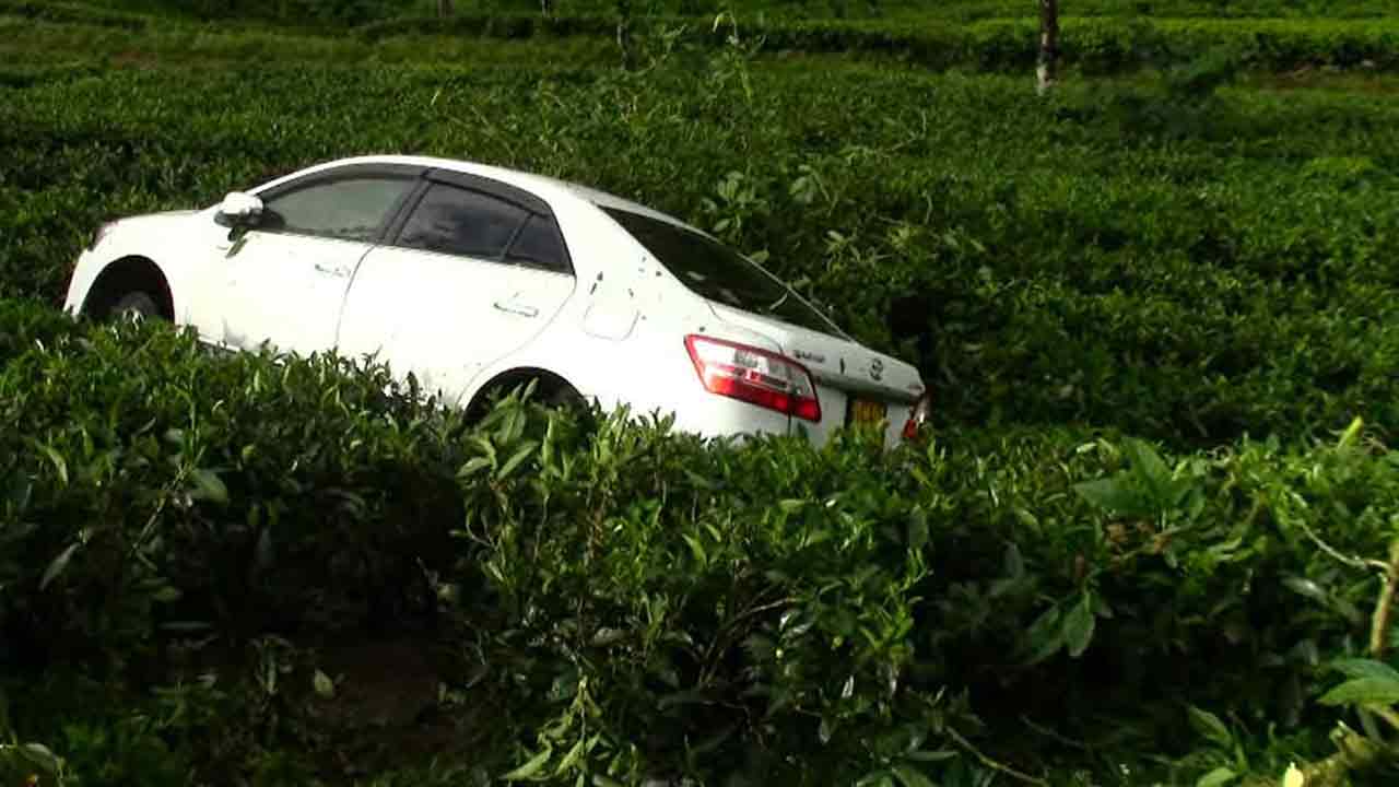 வீதியோரத்தில் நடப்பட்டிருந்த மரம் ஒன்றினை பிடிங்கிக்கொண்டு தேயிலை தோட்டத்தில் பாய்ந்து சொகுசு கார் ஒன்று விபத்துக்குள்ளாகியுள்ளது.